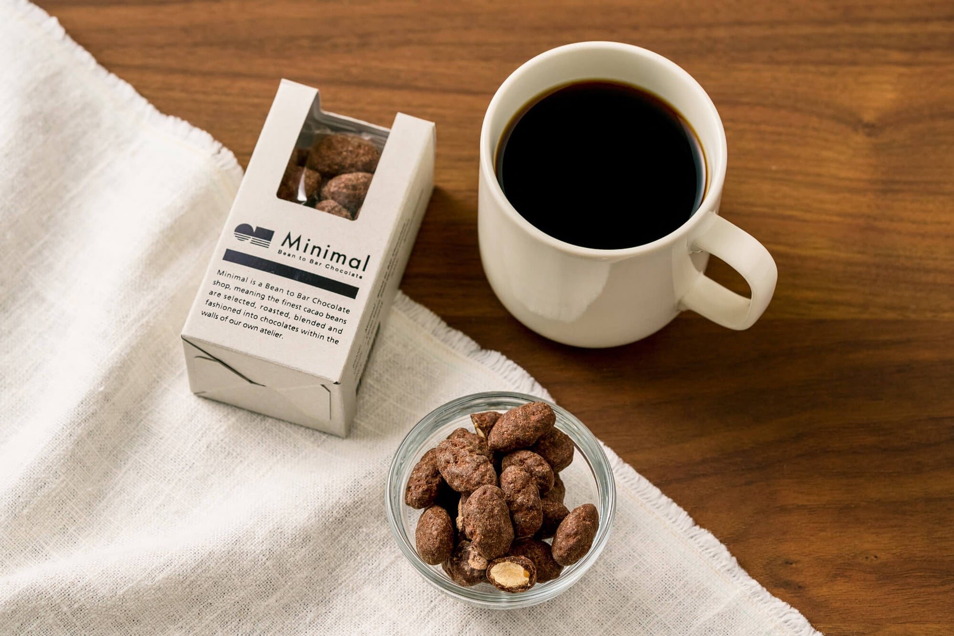 2019年12月の発売以降、リピーターも多く、長らくご愛顧いただいているMinimalの隠れた名品「アーモンドチョコレート」。当初は自家需要でご用意した商品でしたが、「プレゼントにしたいので、贈り物に使いやすくして欲しい」と発売以来多数ご要望をいただいていたことを受けて、この度、よりギフトにお使いいただきやすい新パッケージにリニューアルしました。