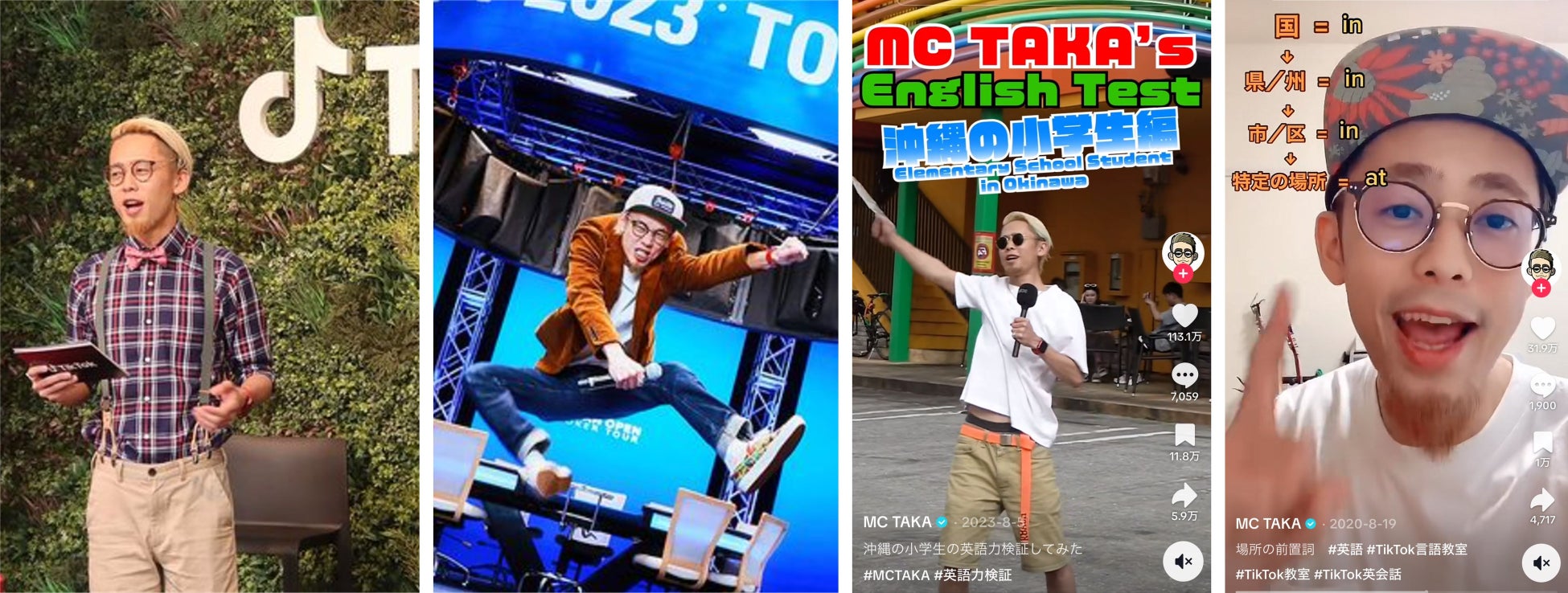2020年7月、TikTokで『MC TAKAのズボラ英会話』を開設。『煽りながら英語を教える』という唯一無二の教え方で老若男女から人気を博し、 始めて5ヶ月で驚異の30万人以上のフォロワーを獲得。現在は日本人の『英語力検証』を行ない、人気コンテンツとなっている。現フォロワー数は50万人以上。