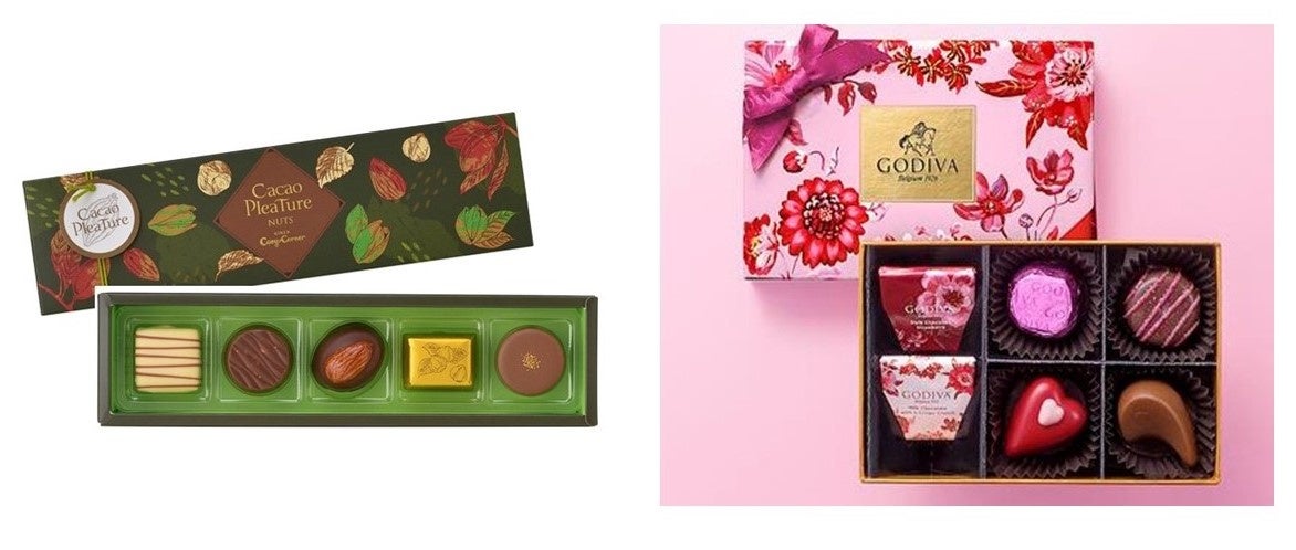 「ゴディバ」からは、ハート形のキュートなパッケージに限定チョコレートを詰め合わせた『ときめく心 ハート セレクション』を販売。大切な人や日頃がんばっている自分に贈る特別なギフトにピッタリの商品です。季節の旬のフルーツを使ったタルトが人気の「キル フェ ボン」からは、『静岡県産“紅ほっぺ”とクルミクランブルのタルト』が新発売!静岡県産“紅ほっぺ”を贅沢に使用した、見た目も華やかな期間限定タルトです。