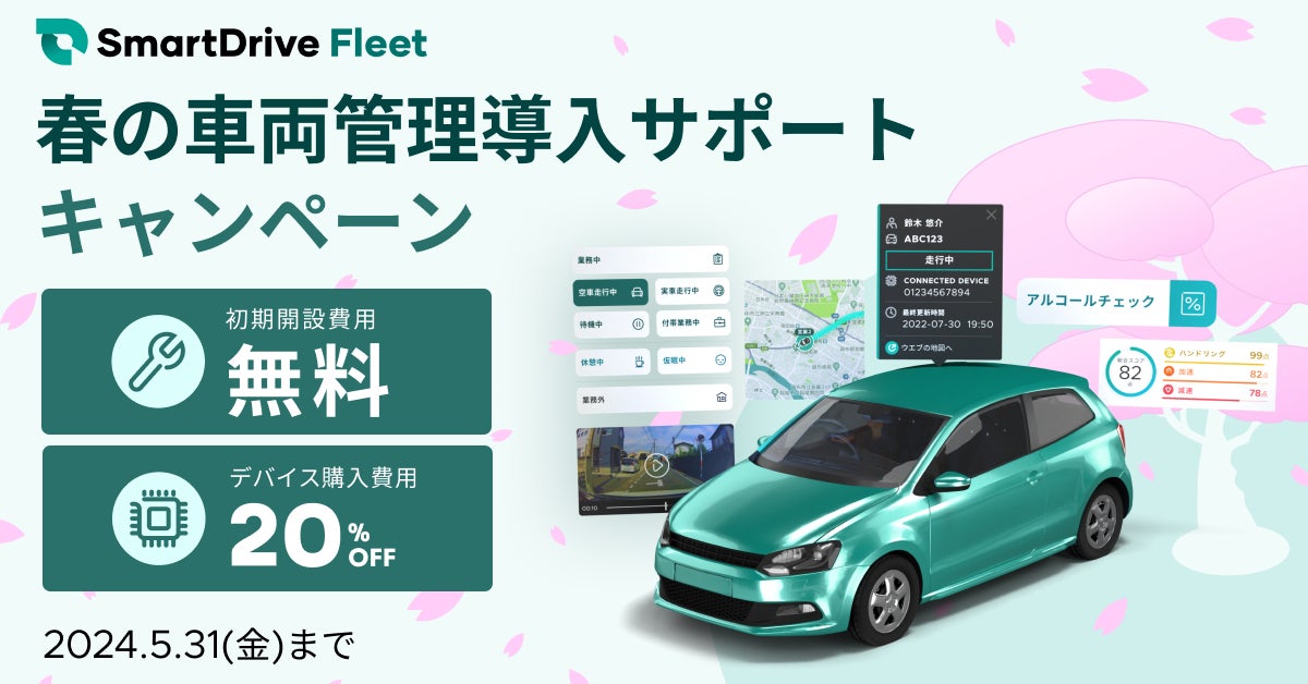 新年度を迎えると、人事異動で初めて車両管理の担当になる方や、運転に不慣れな中で車両を扱う新入社員が増えるタイミングになります。今回のキャンペーンは、当社のクラウド型車両管理システム「SmartDrive Fleet」をお得に利用開始いただき、車両に関する業務のご負担を少しでも減らし、事故削減・安全運転の推進を行うことを目的としています。