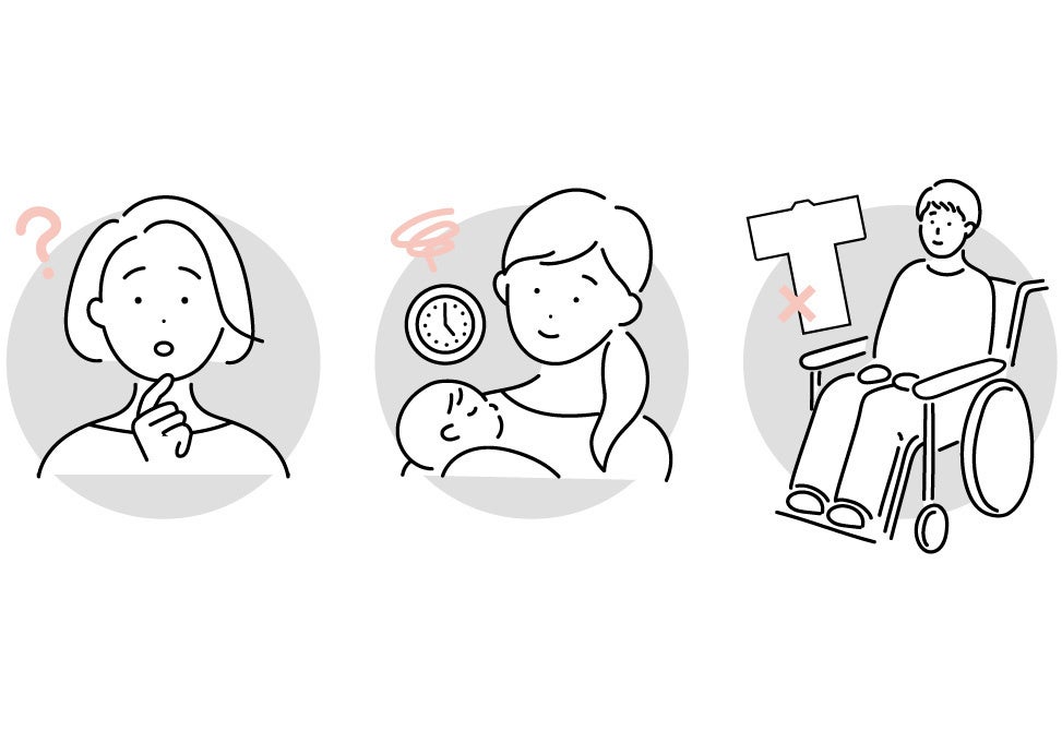 パーソナルフィットオーダーでは、ご自身の身体にあったサイズで一からお仕立てをします。完成品のサイズが合わない方も、身体の動きに制限のある方も、自分ぴったりにカスタマイズできるよう様々な選択肢をご用意しています。