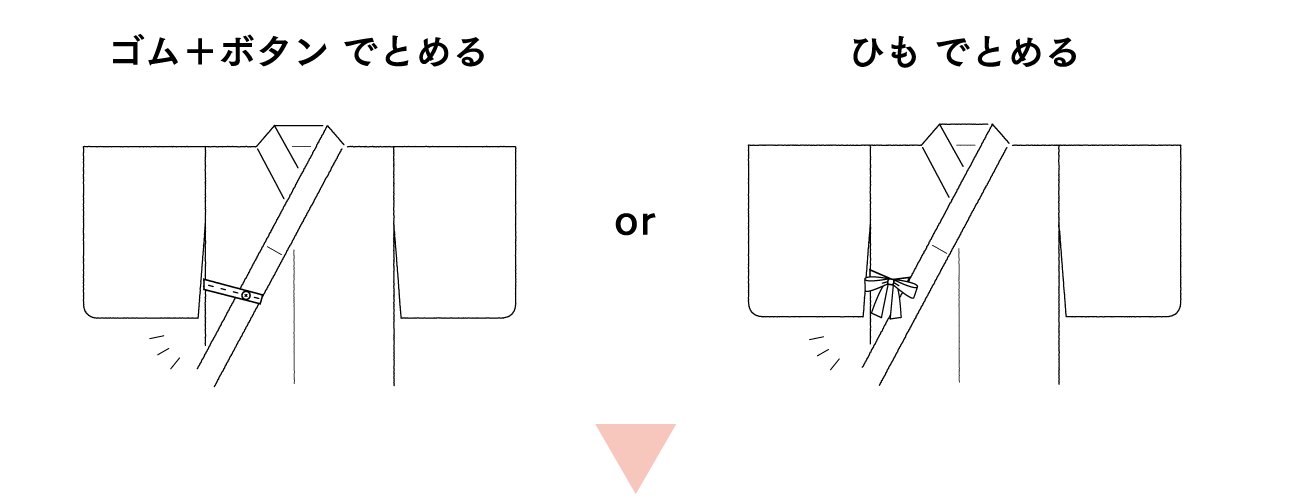必要なのは、きものだけ。付属のパーツを数カ所留めることで、あっという間に着られます。あれこれ小物を準備する必要がないので、ゆっくり着る時間がなくても大丈夫。もちろん着付けを覚えなくても着られます。