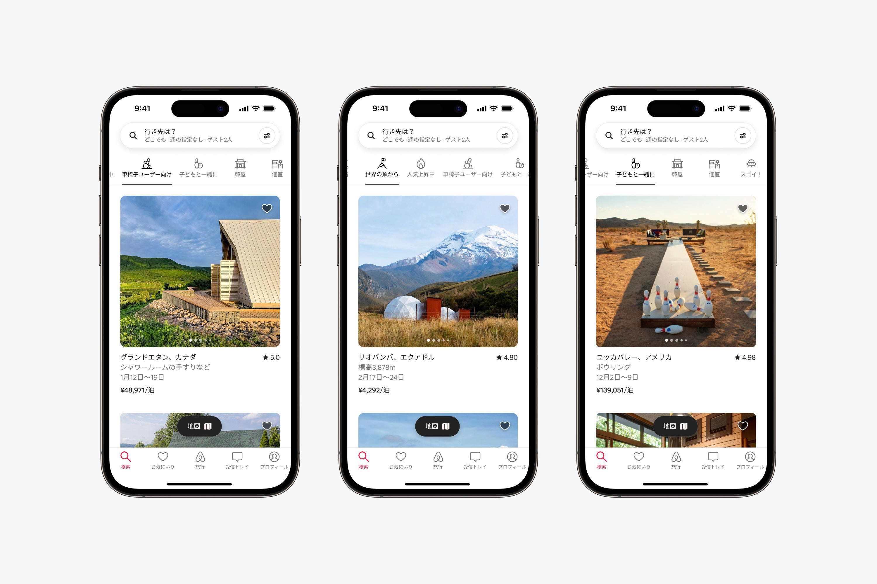- 「Airbnb検索カテゴリ」の拡充:6つの新しい検索カテゴリを追加し、宿泊先の特徴やタイプをもとにしたAirbnbでのリスティングの検索がさらにしやすくなるよう、カテゴリの表示方法を改善しました。