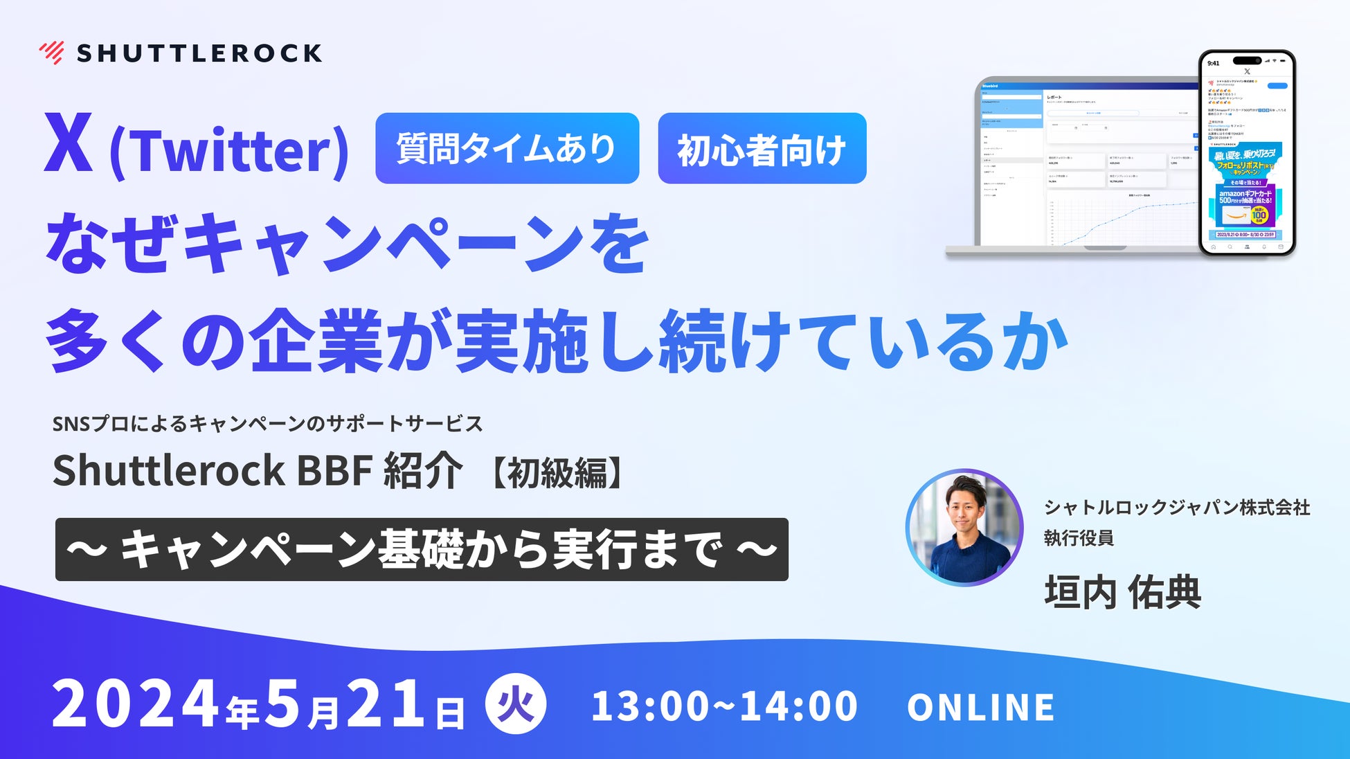 5月21日開催『なぜ X (Twitter) のキャンペーンを多くの企業が実施し続けているのか?』Shuttlerock BBF for X 説明会 〜 初級編 〜