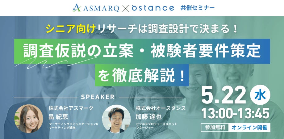 『シニア向けリサーチは調査設計で決まる!調査仮説の立案 被験者要件策定の手法を解説』セミナー開催のお知らせ
