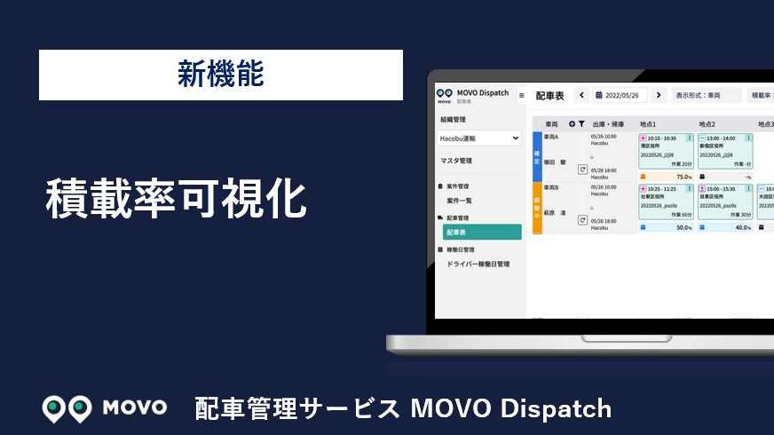 配送効率向上に活用、配車管理サービス MOVO Dispatchに積載率可視化機能を追加