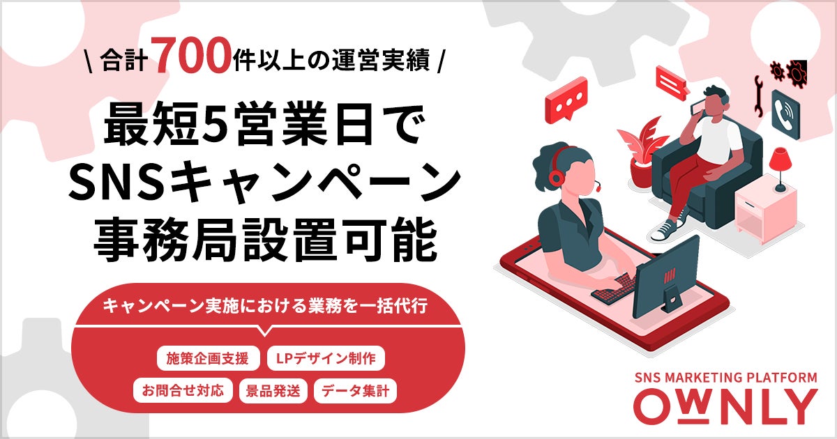SNSマーケティングプラットフォームOWNLY(オウンリー)を開発・運営するスマートシェア株式会社(東京都渋谷区、代表取締役 西山統 以下「当社」)は、SNSキャンペーンの実施における全ての業務を一括代行する事務局を限定価格で提供開始いたしました。