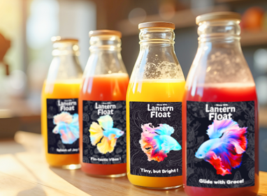 また、ホワイトインクおよびクリアインクを組み合わせることで、最大3層印刷に対応。店舗のウィンドウ装飾(図4)やステッカー・ラベル(図5)など、デザイン性と機能性を両立した付加価値の高い表現が可能です。