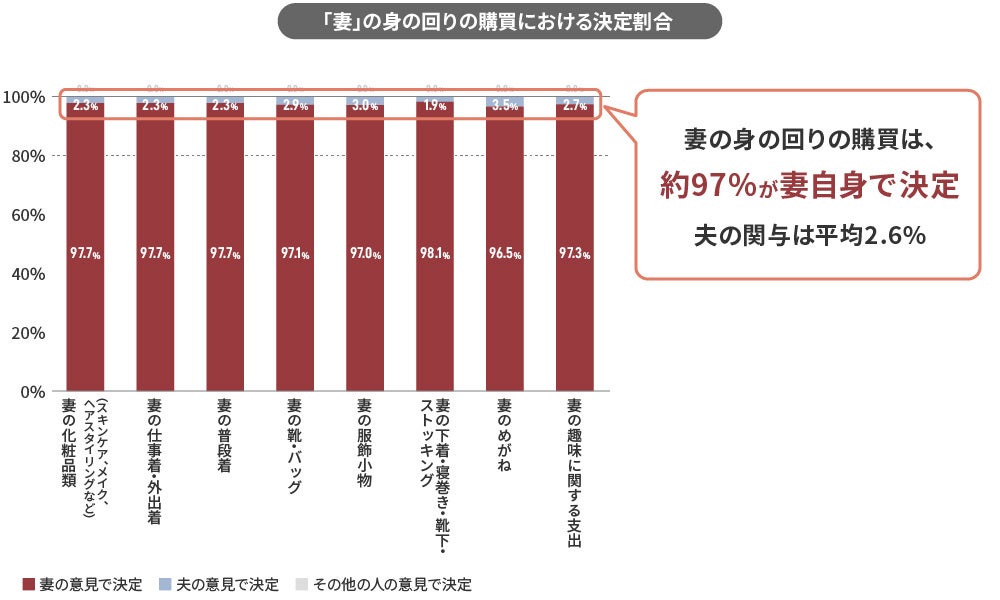 ◆「妻」の身の回り品:約97%が自己決定、夫の関与はわずか2.6%