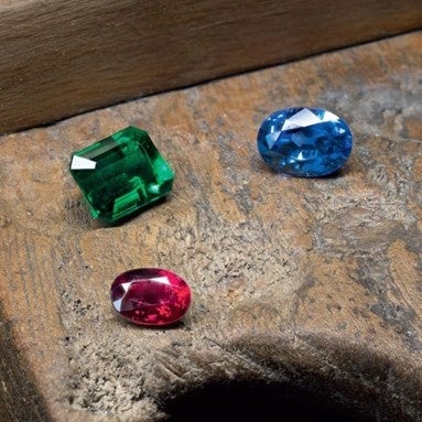 作品に使用されるサファイアは、濃く均一なブルーの色合いに注目して選ばれます。その華やかな色味が魅惑となっているルビーについては、ピンクから深いパープルまでさまざまな色調が揃うなかで、メゾンが選ぶのは強く鮮やかな赤みを帯びた石です。最高度の倫理観と品質基準に基づいて選定されたルビーが、ソリティアに唯一無二の炎を吹き込みます。一方、エメラルドは深いグリーンの色彩が魅力的です。“ジャルダン(庭)”と呼ばれるインクルージョンが、思わず引き込まれるような深みを石に与えています。エメラルドの選定にあたり、色の濃さと石の輝きが特に重視されます。
