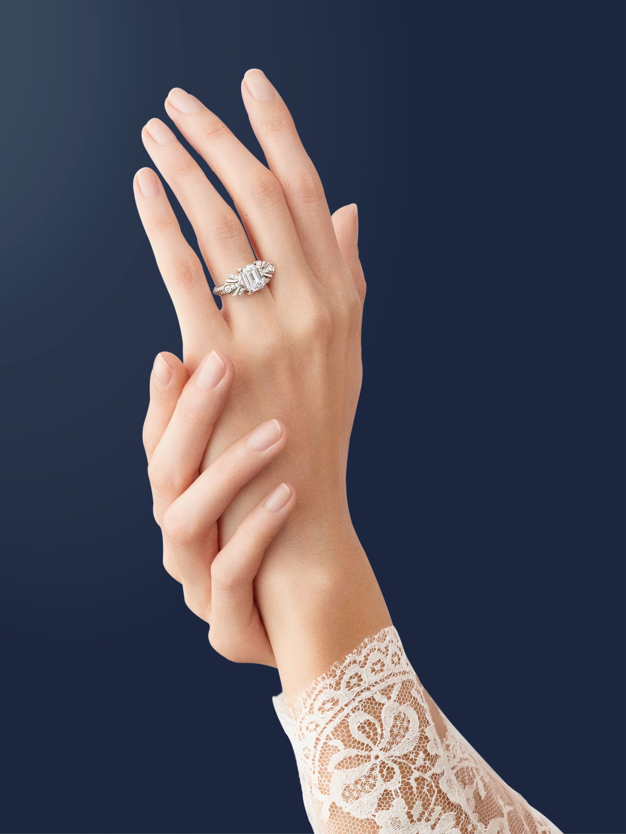 メゾンはダイヤモンドの美しさに魅せられ、眩いばかりのジュエリーによってその純粋な輝きを際立たせています。耳元やデコルテ、手首を飾る作品はどれも、メゾンならではのタイムレスなエレガンスを湛え、エンゲージメントリングを引き立てます。