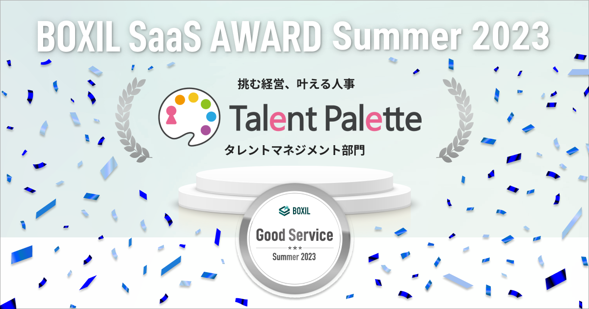 タレントパレットが「BOXIL SaaS AWARD Summer 2023」のタレントマネジメント部門で口コミの総得点が高い「Good Service」を前回に続き連続受賞