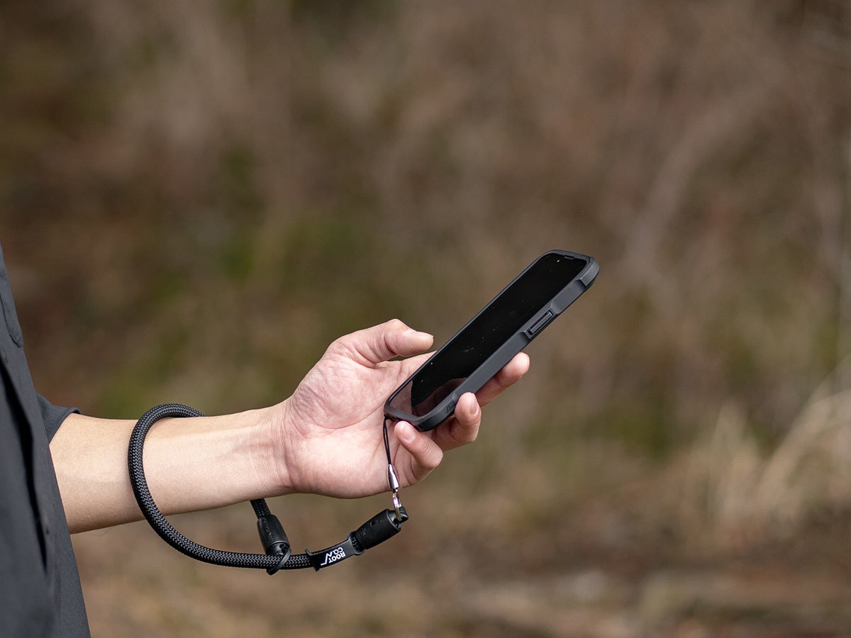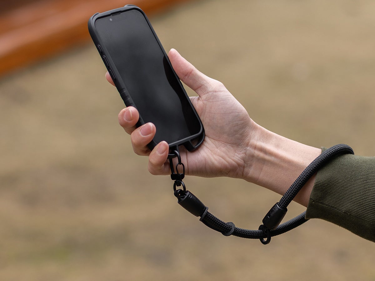 リングをスライドすることで手首にフィットするサイズへスムーズに調整でき、安定したホールド感で落下防止にも貢献。用途に応じて選べる「カラビナタイプ」と「ストラップ紐タイプ」の2モデル展開です。