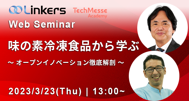リンカーズ株式会社(本社:東京都文京区、代表取締役社長:前田 佳宏)は、ものづくり企業のオープンイノベーションを推進する技術者や研究者を対象に、味の素冷凍食品株式会社のオープンイノベーションに向けた取り組みを紹介する Web セミナーを、3 月 23 日(木) 13:00 より開催いたします。