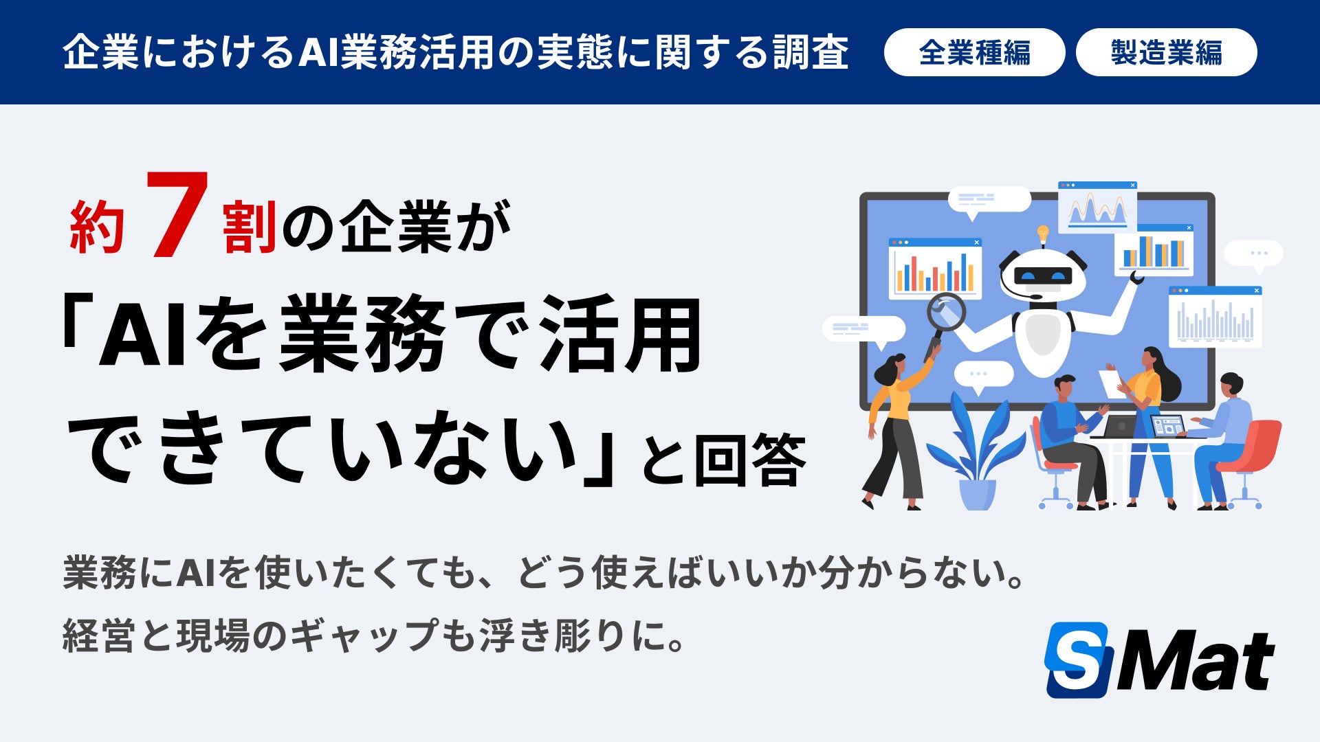 IoT在庫管理システム「SmartMat Cloud(スマートマットクラウド)」を運営する株式会社エスマット(所在地:東京都品川区、代表取締役:志賀 隆之/林 英俊)はこのたび、製造業を含む全19業種の会社員145名を対象に、「企業におけるAI業務活用の実態調査(全業種版・製造業版)」を実施しました。