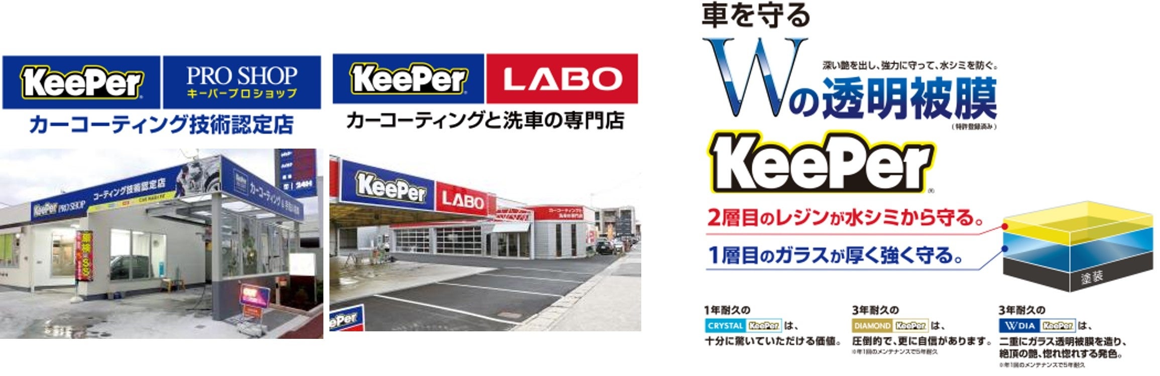 KeePer技研はカーコーティング、洗車用ケミカルと機器等の開発、製造、販売の他、ガソリンスタンド併設型の「KeePer PRO SHOP (キーパープロショップ) 」と、屋内施工設備完備の専門店「KeePer LABO (キーパーラボ) 」の2種類の店舗展 開を全国で行っています。