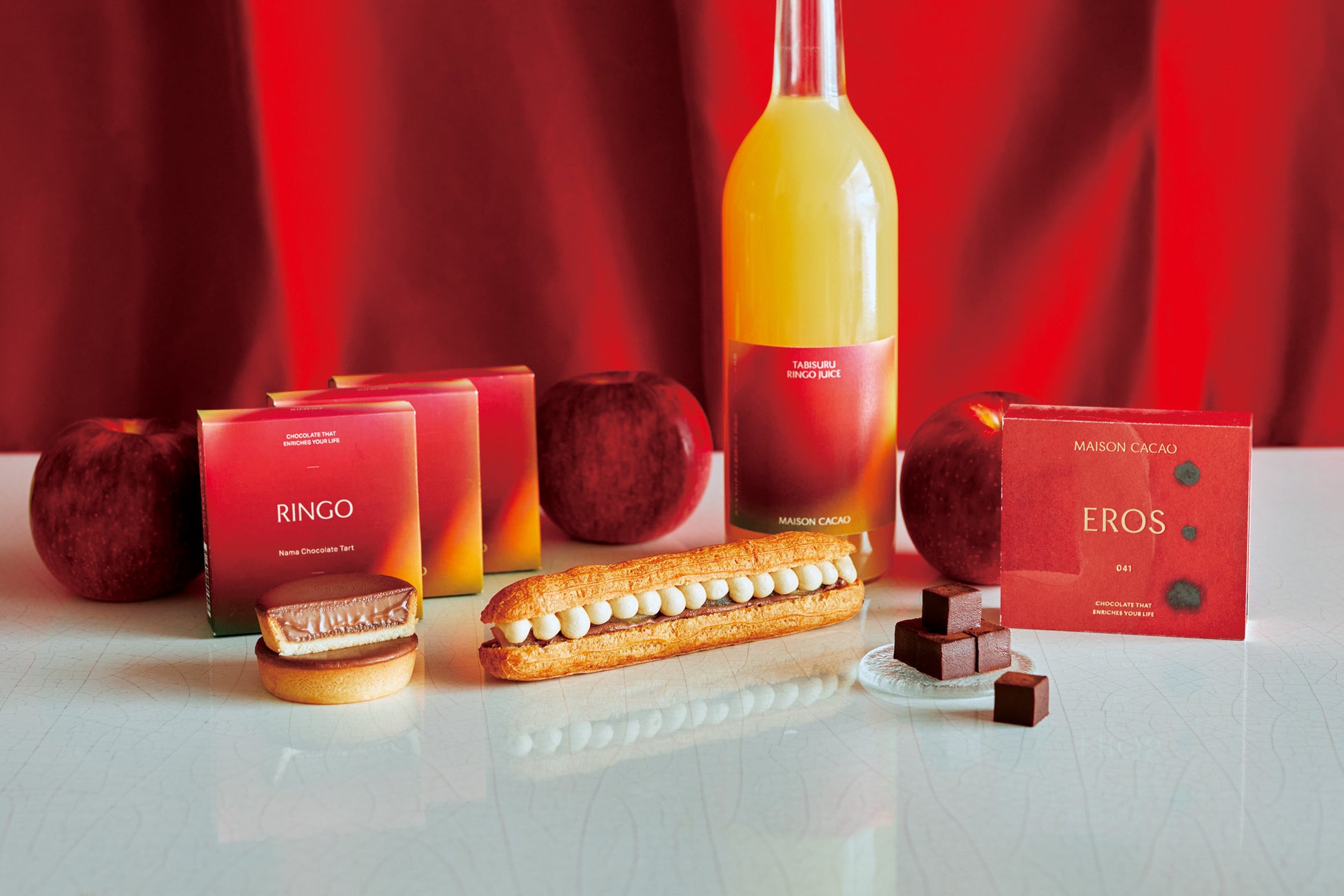 年間で12万本以上が完売するブランドの看板品の「生ガトーショコラ」は、Bewitchedのテーマの元、魔女を忍ばせた遊び心のある限定パッケージで登場します。また意外な相性の良さでお客様に驚いていただきたいと、日本各地を巡り出会った青森県平山農園のりんごとチョコレートを合わせたスイーツも登場します。