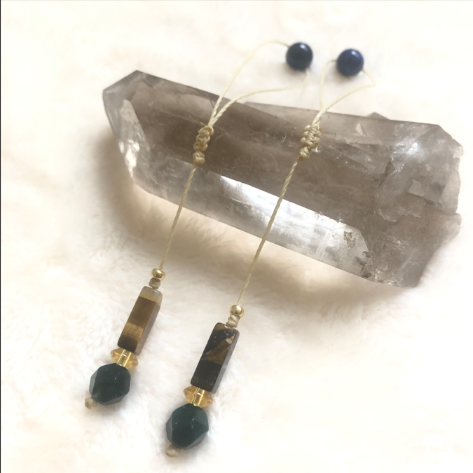 可愛いだけではなく、顔や肩・首の悩みにアプローチする耳にかけるだけのアクセサリーを作るワークショップ。お気に入りの天然石と糸を選んでもらい作ります。