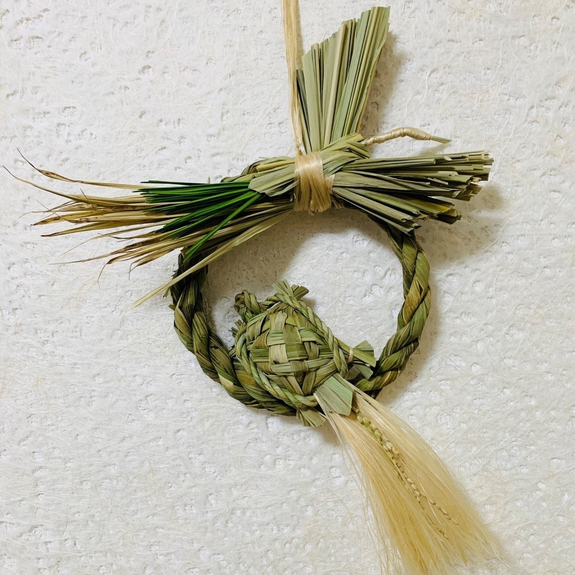 神の草 真菰の葉と、神の依代大麻の茎をなめした光り輝く精麻を素材に注連縄、祝い亀などのお飾りを製作します。