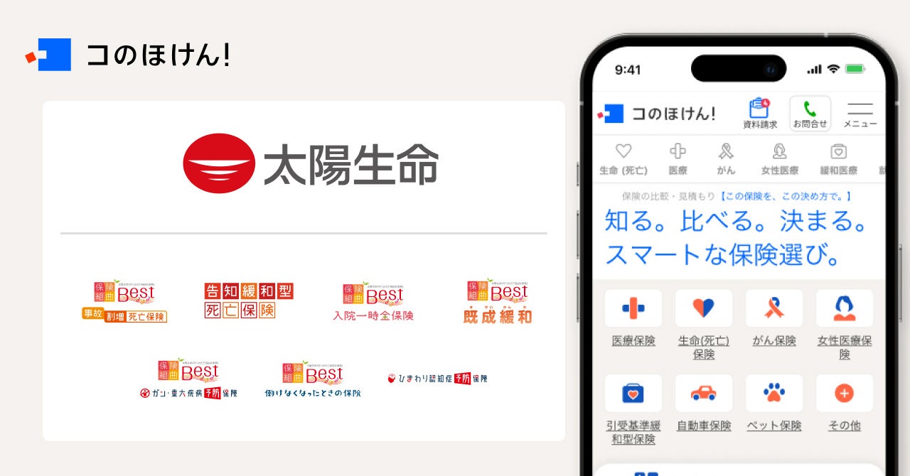Sasuke Financial Lab株式会社(本社:東京都千代田区、代表取締役:松井清隆、以下「当社」 )が運営する保険の診断・一括比較・見積もりサイト「コのほけん!( https://konohoken.com/ )」において、太陽生命保険株式会社(本社所在地:東京都中央区、代表取締役社長:副島直樹、以下「太陽生命」)の7つの商品の取り扱いを開始しましたので、お知らせ致します。