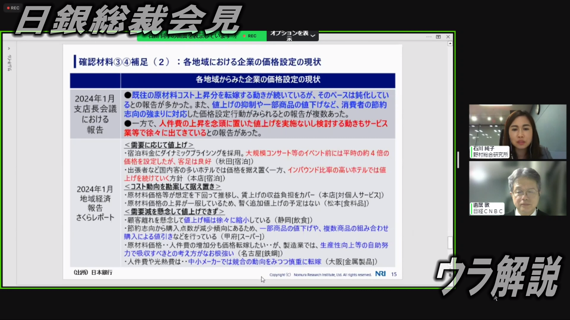 【「マイナス金利解除」について何を語るのか?】日銀・植田総裁による会見を野村総研・石川 純子氏と日経CNBC・直居敦がリアルタイム解説!日経CNBCが「LIVE!日銀総裁会見『ウラ解説』」第8回を配信