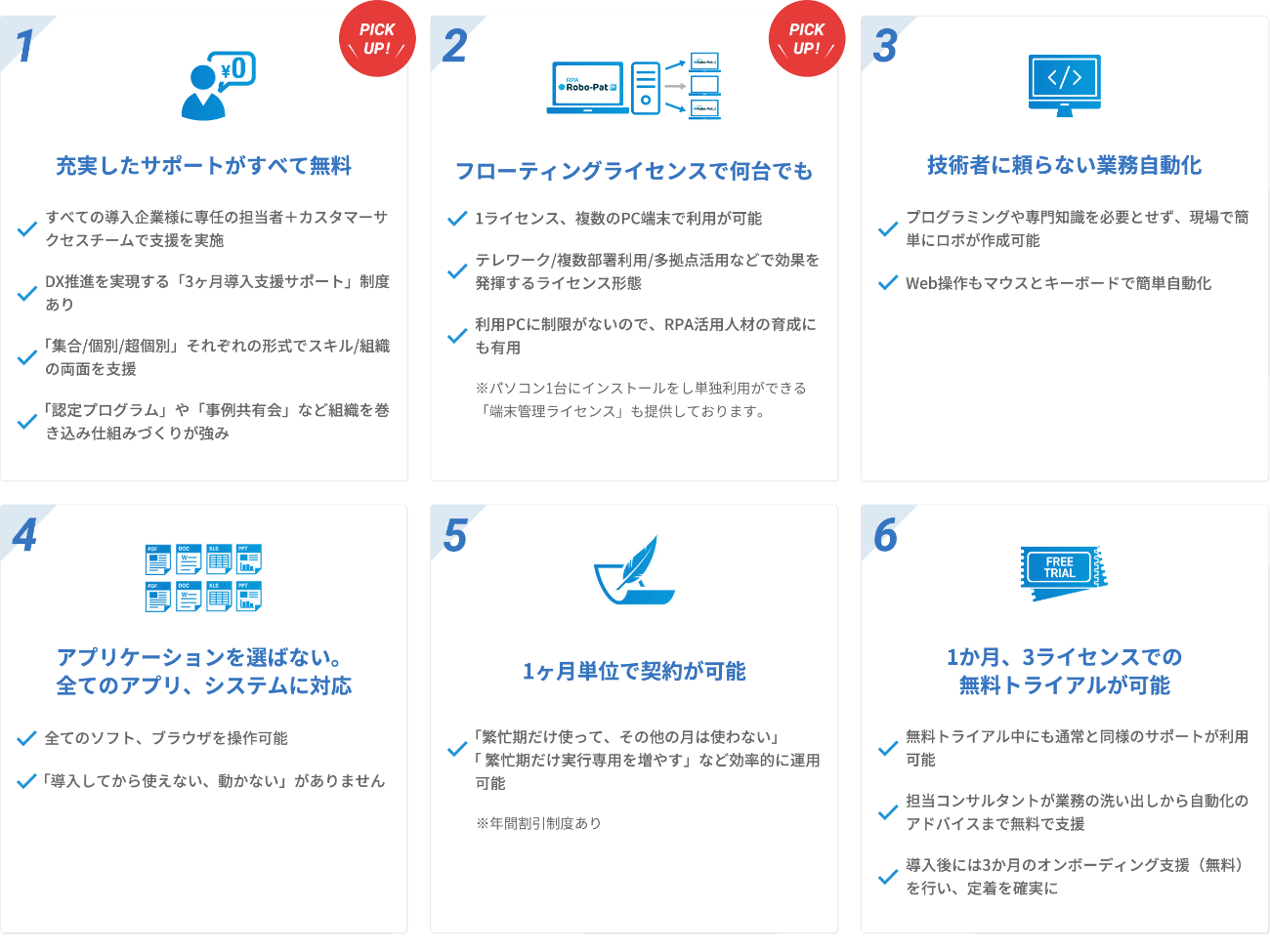 RPAロボパットDXとは 「RPAロボパットDX」は情報システム部門に頼らず「現場が自ら業務を自動化できる」ことをコンセプトに開発されたRPAです。人が行う「普段のPCでの操作感」そのままな直観的な操作が可能となっています。業種・規模問わず多くの企業様に現在ご利用いただいています。2022年3月には900社1800ライセンスを突破いたしました。(※トライアルライセンスは含みません)2022年7月よりフローティングライセンス(1ライセンスを複数PCで使用できるライセンス形態)も選べるようになり、活用の幅がさらに広がります。