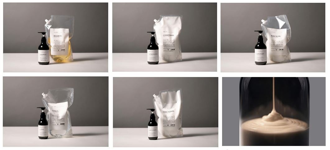 シャンプー、コンディショナー、ボディウォッシュ、ローション(化粧水)、ミルキーローション(乳液)