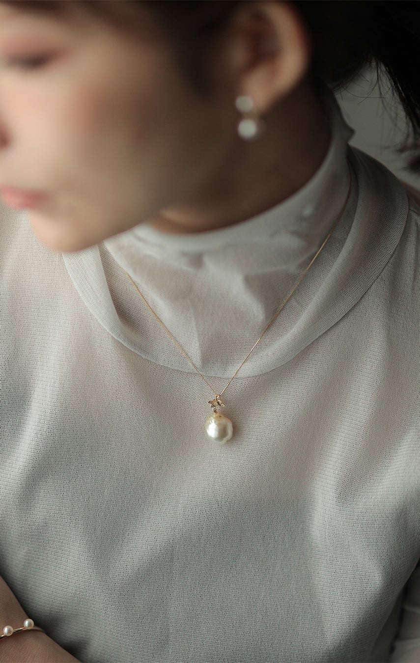 天然の美しいニュアンスカラーが絶妙な抜け感を放つ、唯一無二の造形美に心惹かれる南洋白蝶バロックパール。