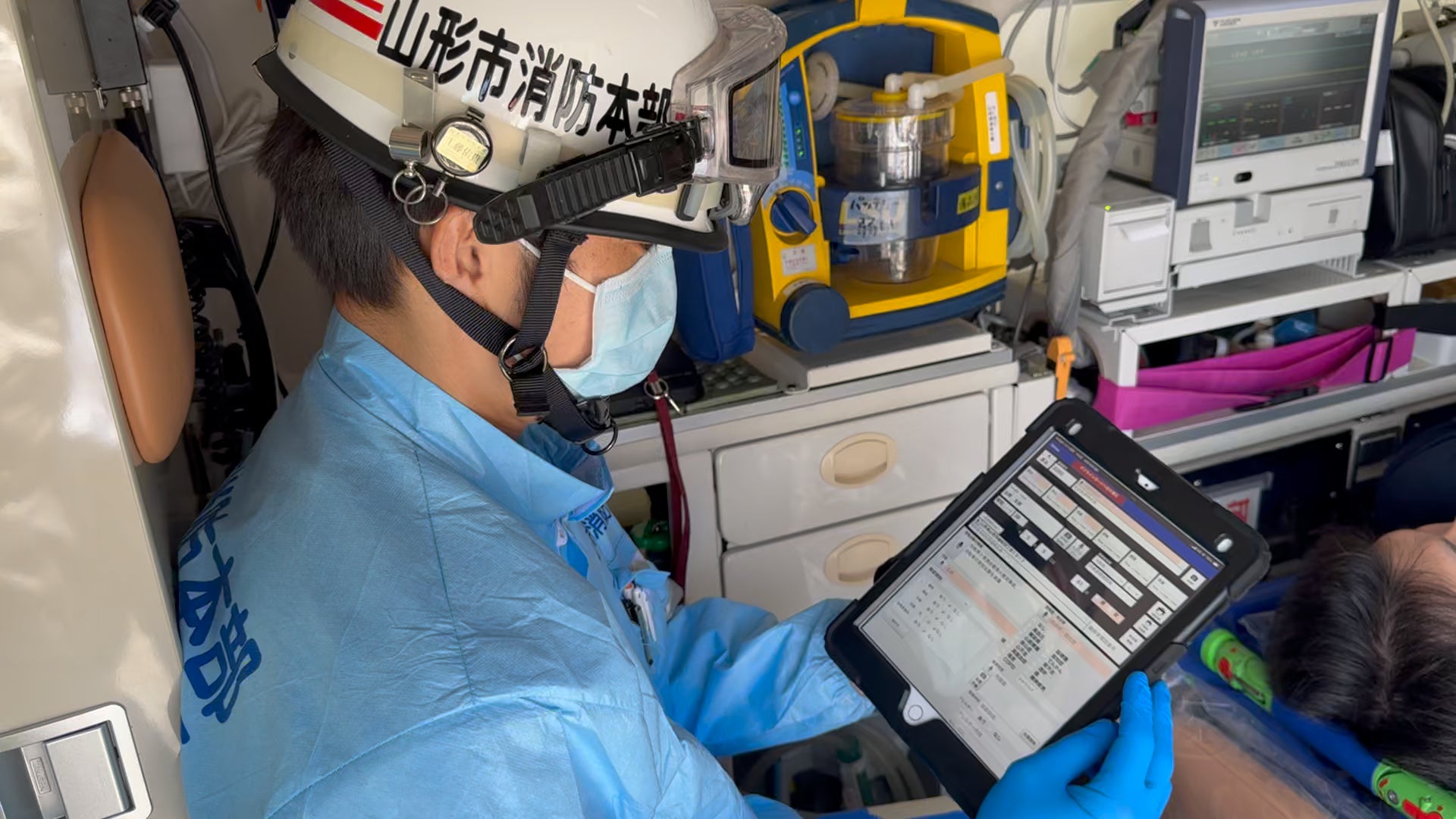 山形市消防本部と医療機関の間に、TXP Medicalの提供する救急医療搬送システム「NSER mobile」を導入。救急隊が入力した患者情報がリアルタイムで医療機関と共有され、受け入れ体制の最適化と業務負荷軽減を実現しました。また、山形市が中心となり周辺地域にも同システムでの情報共有による医療機関連携を即し、医療圏をまたぐ広域での運用を実現しました。