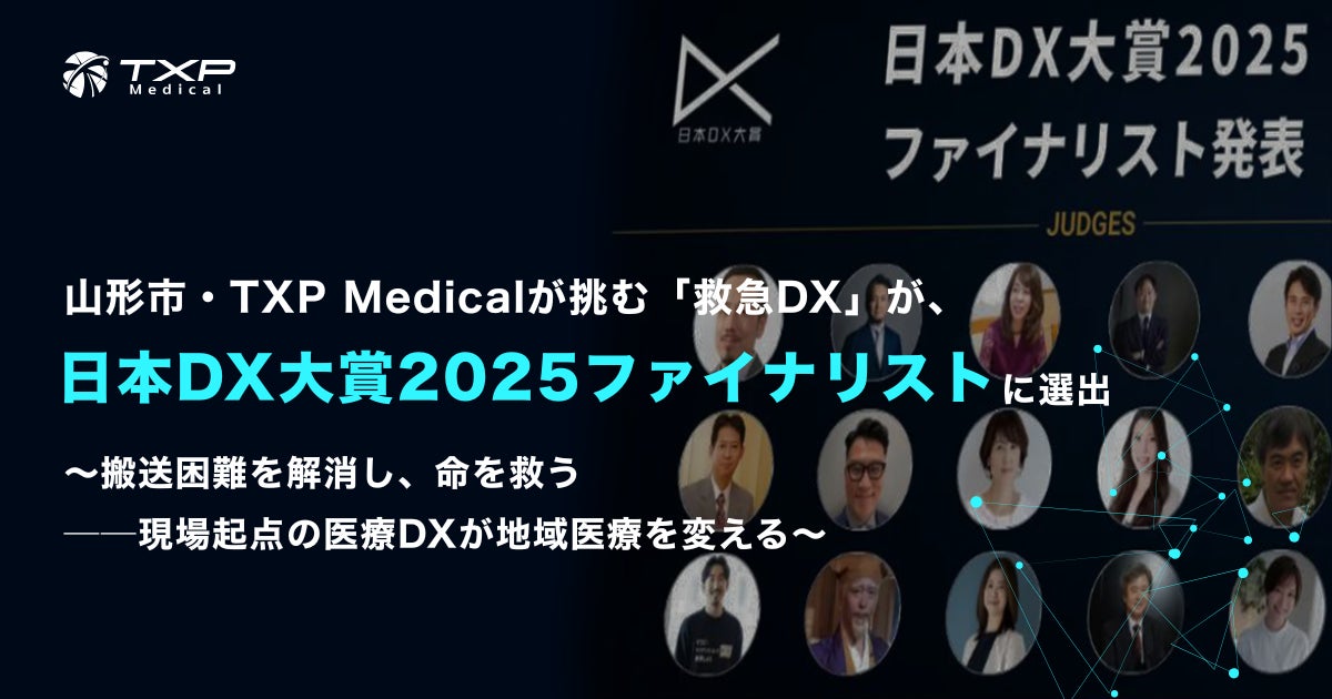 TXP Medical株式会社(本社:東京都千代田区、代表取締役:園生智弘、以下「TXP Medical」)は、山形市と共同で取り組む「救急DX」が、日本DX大賞2025(主催:日本DX大賞実行委員会)において【地域DX部門】のファイナリストに選出されたことをお知らせいたします。
