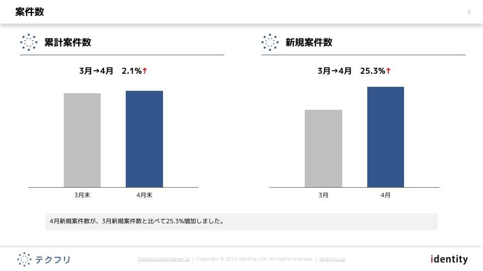 4月新規案件数が、3月新規案件数と比べて25.3%増加しました。