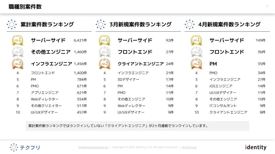 3月度と比較した4月度のデータや、テクフリ全体のデータなど、より詳細なレポートは下記URLよりダウンロードいただけます。案件の市況感を知りたい方や、キャリアアップのために情報収集をしたい方は、ぜひダウンロードくださいませ。