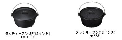 従来モデルのダッチオーブンSF(12インチ)には脚がついており、よりキャンプシーンでの使用に寄り添った形状でした。脚をなくすことで家庭のコンロでも使いやすく様々なシーンに対応しています。