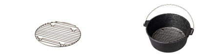 ①底網の追加“オーブン”機能の強化ダッチオーブンの底に敷く底網を追加することで食材の焦げ付き防止や、蒸し料理に最適となり、オーブンの機能を最大化します。