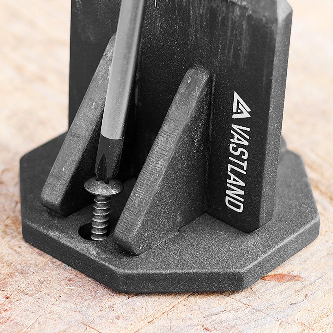 表面をサンドブラストで粗目に仕上げ、薪割り台上での横滑りを低減。ネジ固定も可能で、安定性を向上させます。※ねじは付属しません