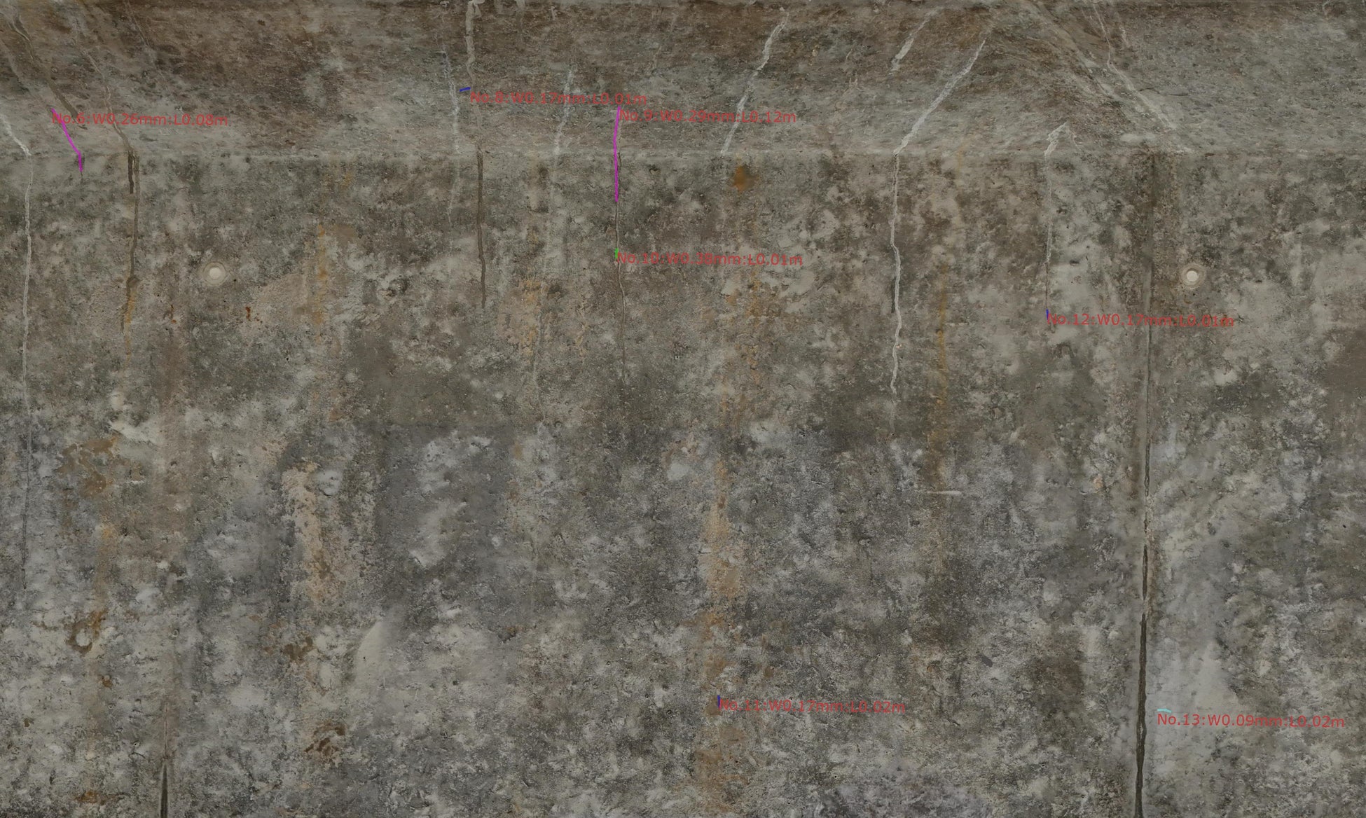 さらに、撮影データをAI解析し、0.1mmのひび割れの有無の確認を行い、橋梁の損傷箇所や劣化傾向を体系的に蓄積・分析しました。