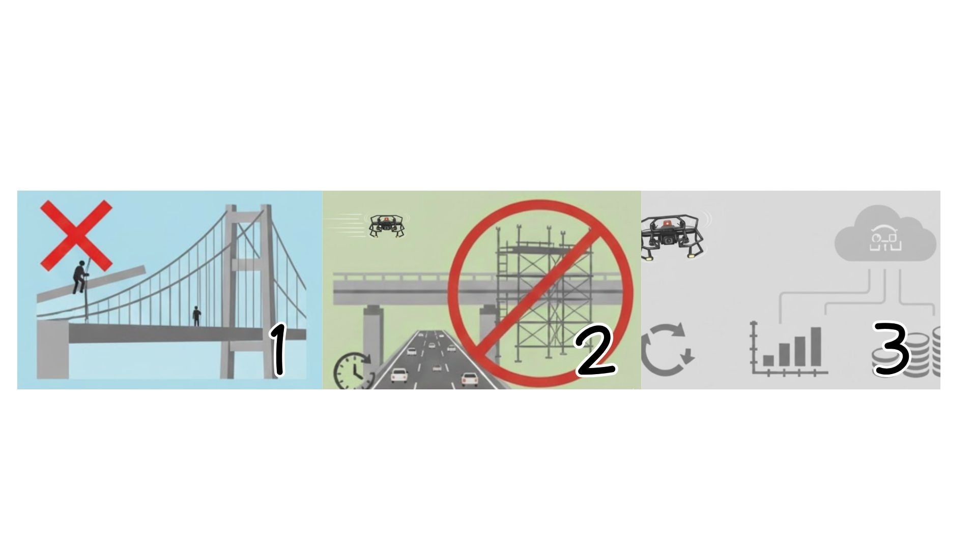 従来は足場の組立と撤去に約1週間を要していた橋梁点検工程を、ドローン運用により不要化。準備や復旧にかかる時間・労力を大幅に削減しました。