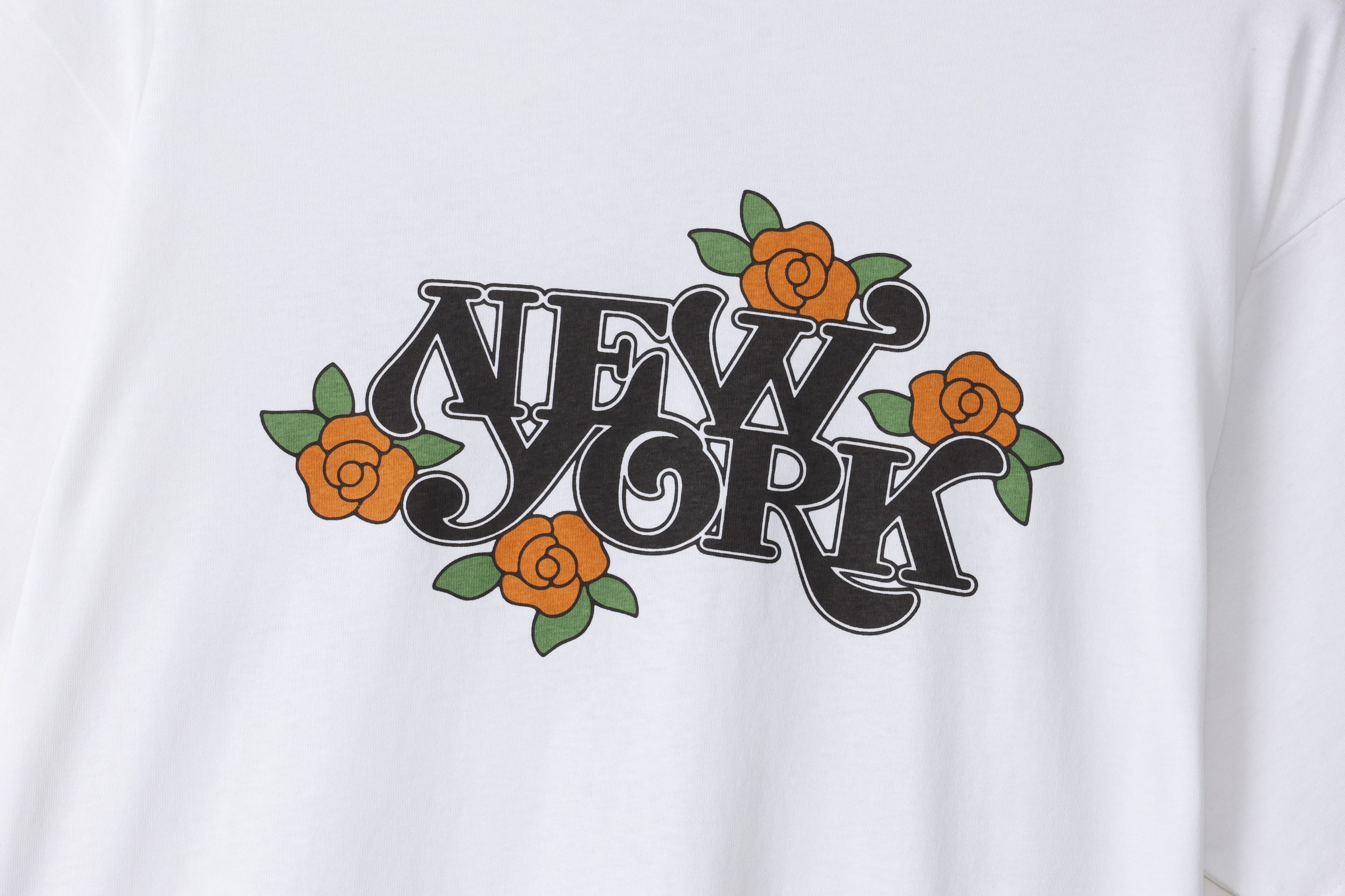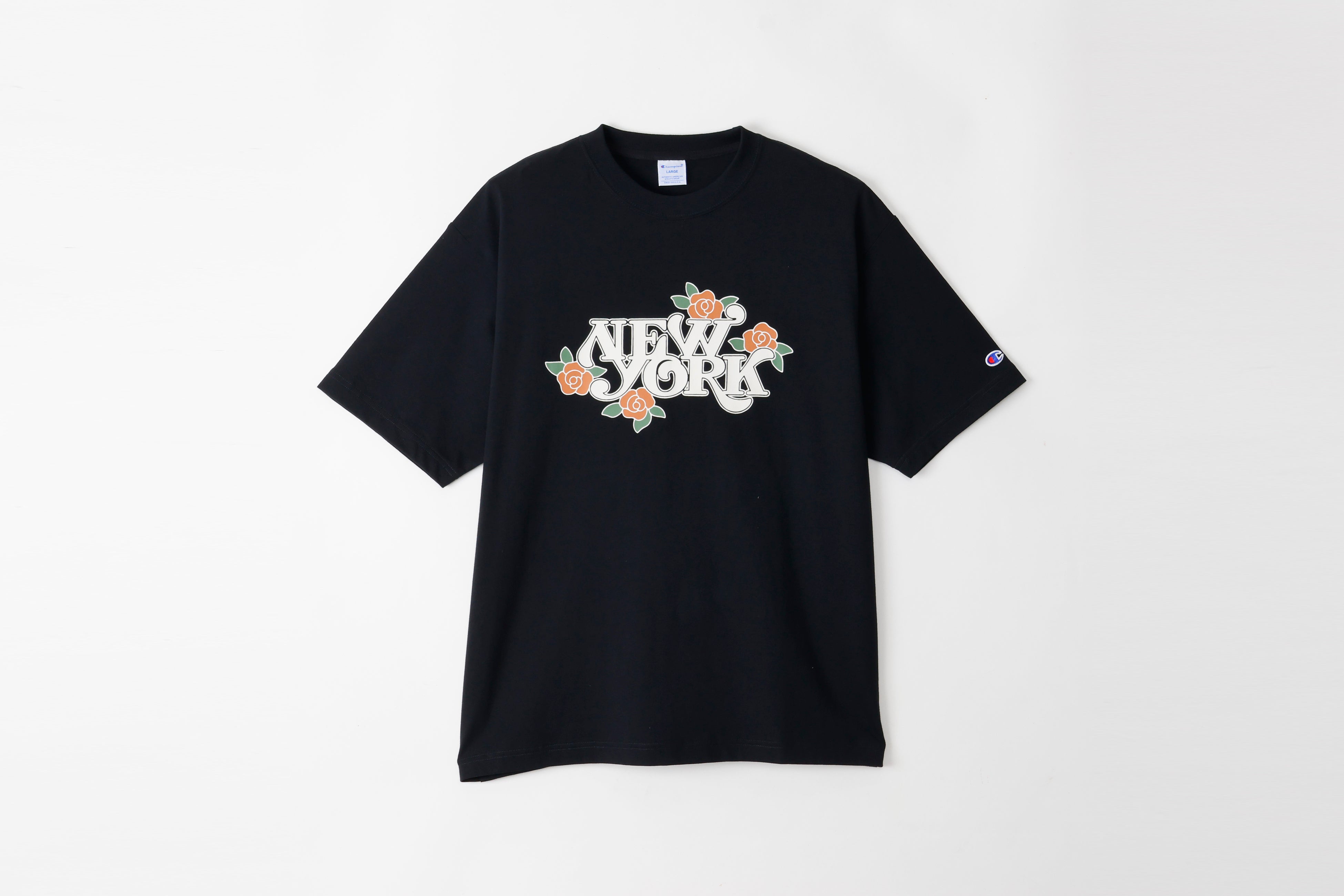 もう一つは、 Champion が生まれたニューヨーク州をイメージ、「NEW YORK」のフォントをオリジナルでデザインし、ニューヨークの州花である薔薇を多くあしらうことで、多種多彩の花を身にまとい、愛と平和のスローガンを掲げていた1960~1970年代のヒッピーカルチャーを表現しています。カラーはホワイト、オックスフォードグレー、ブラックの3色展開で販売いたします。