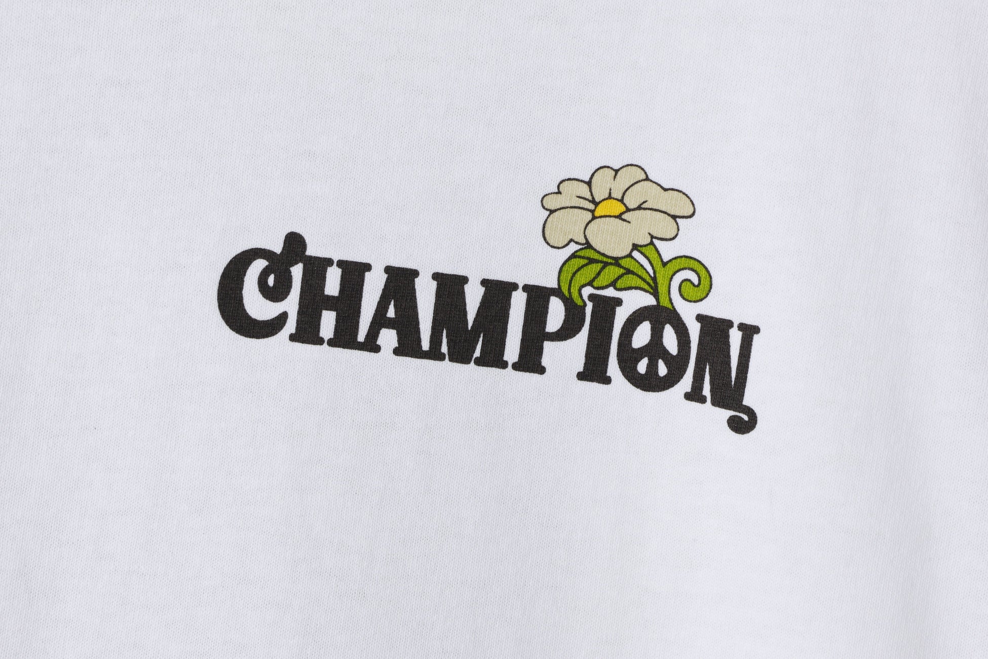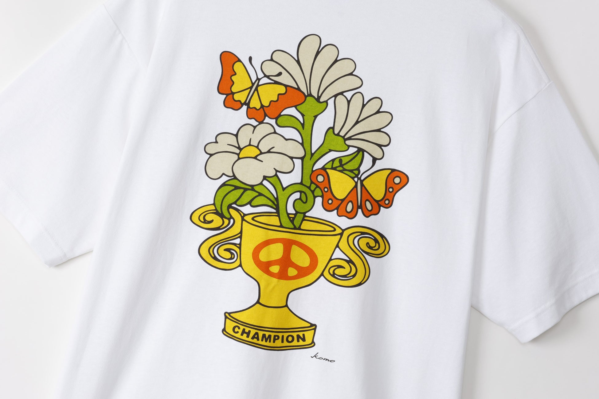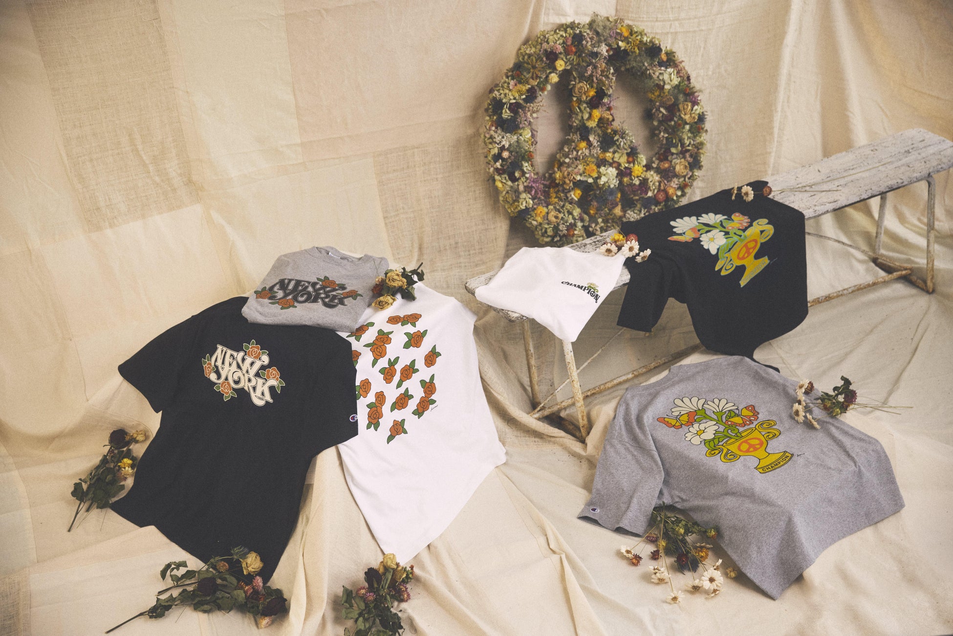 今回のコラボレーションアイテムは、 Yusuke Komori氏らしい「PEACE (平和)」をテーマに、様々な「Flower (花)」とChampion からインスピレーションを得て、デザインされたショートスリーブTシャツ2型を展開いたします。