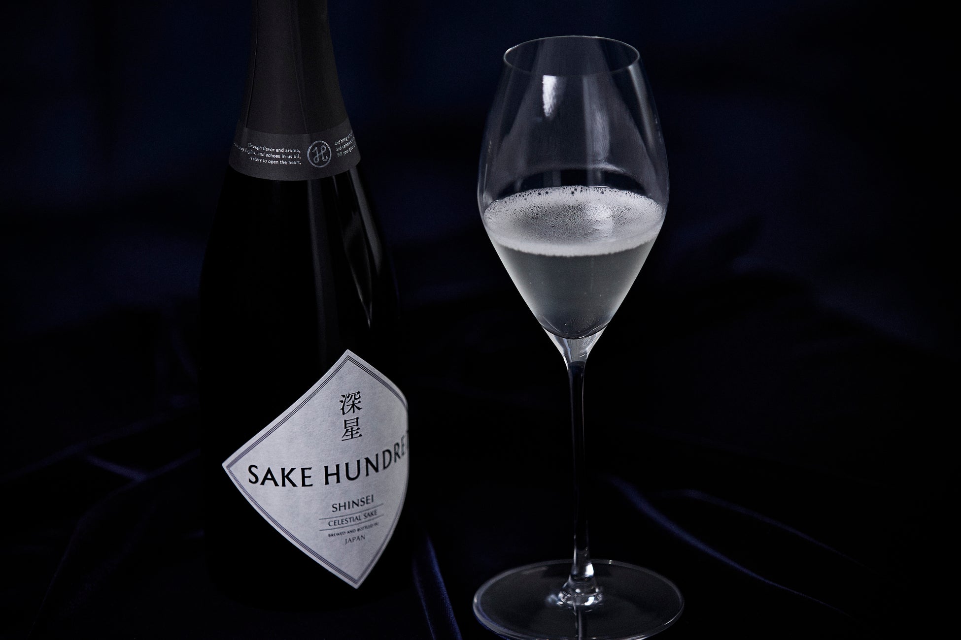 アートと共にお楽しみいただくのは、夜空を彩る星影のような泡が煌めくスパークリング日本酒『深星|SHINSEI』