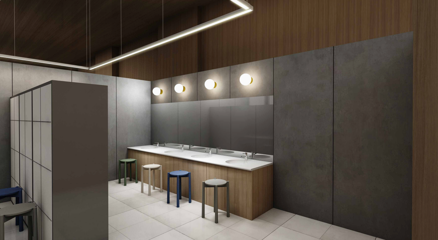 また、パティオエリアにある水盤の一部は水深を深くし、水風呂として整備いたしますので、身体をしっかり冷やし、外気浴もお楽しみいただけます。共有スペースには屋外シャワーや、男女の更衣室、シャワー設備なども新設します。