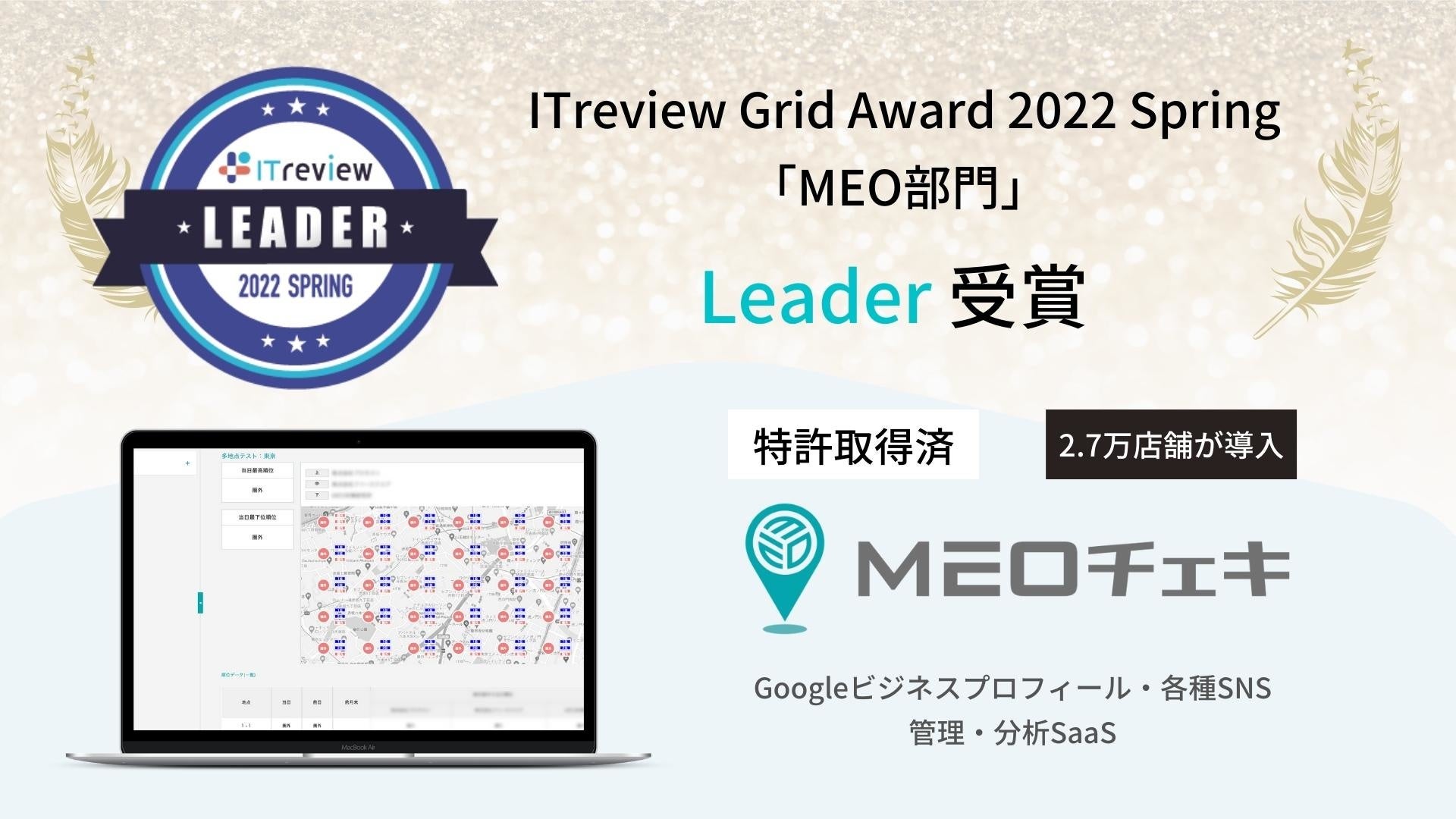 MEOチェキが「ITreview Grid Award 2022 Spring」のMEO部門において「Leader」を3シーズン連続受賞!