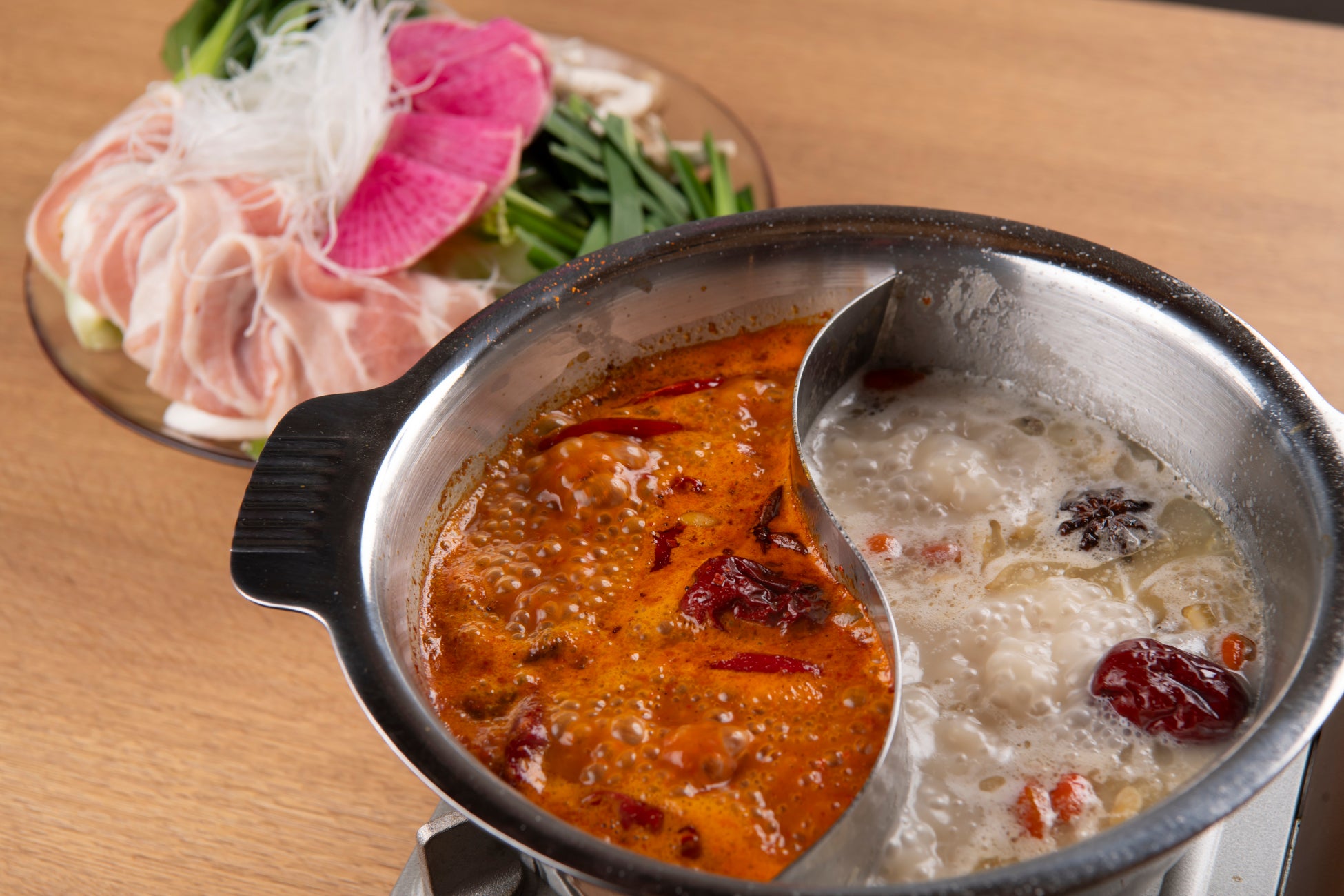 しびれる辛さとやさしい白湯、2つの味から選べる本格台湾火鍋。