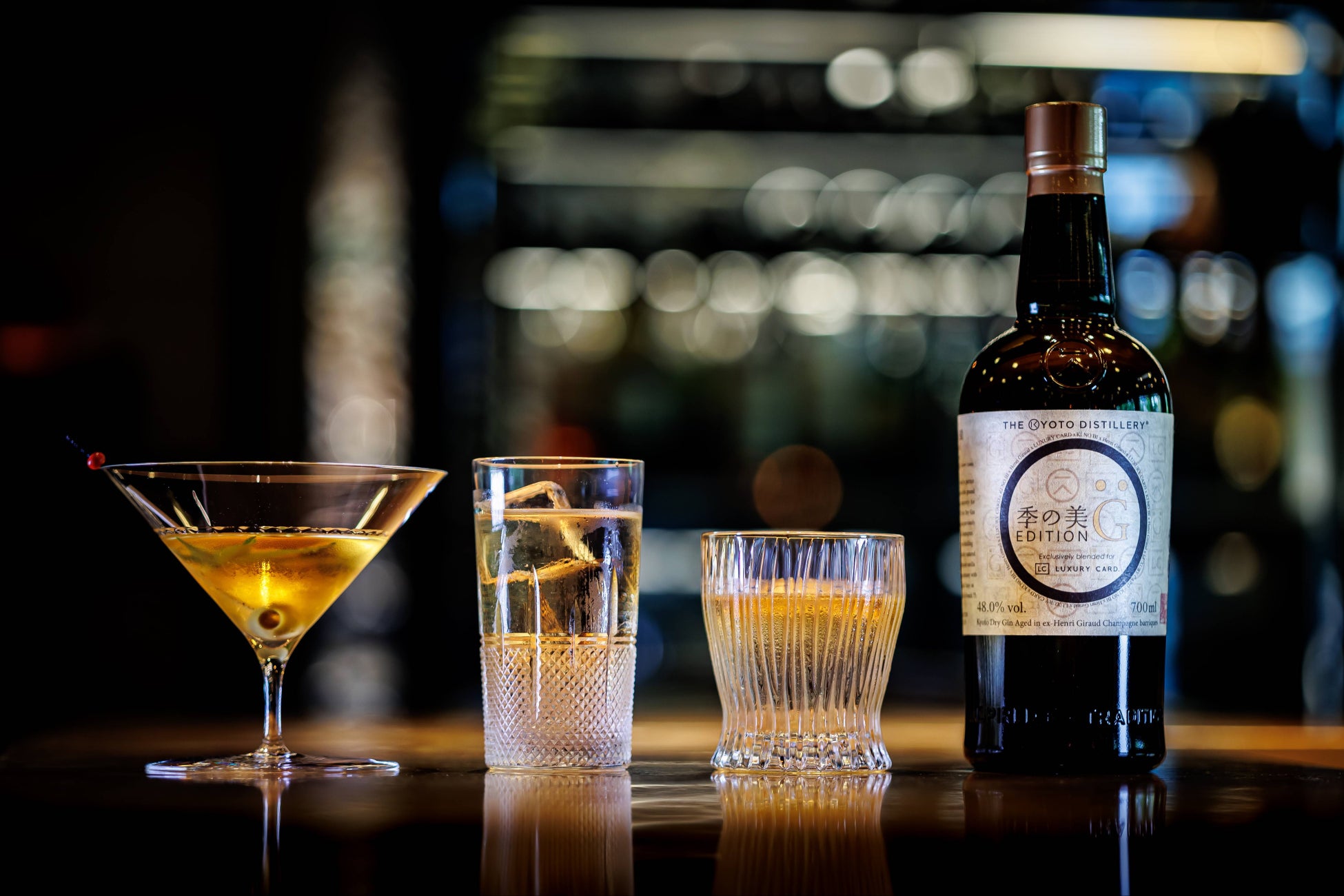 ホテルのバー&ラウンジ「THE GARDEN BAR」にて、「京都蒸溜所」とフランスのシャンパーニュメゾン「アンリ・ジロー(Henri Giraud)」 がラグジュアリーカードのために特別ブレンドしたカスクエイジドタイプのジン「季の美 エディションG exclusively blended for LUXURY CARD」をサービス。