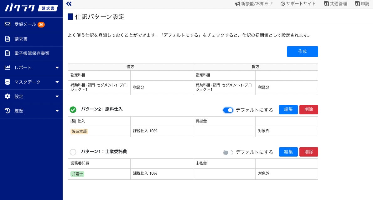 バクラク請求書アップデート〜よく使う仕訳をあらかじめ設定できる「仕訳パターン」機能を追加〜