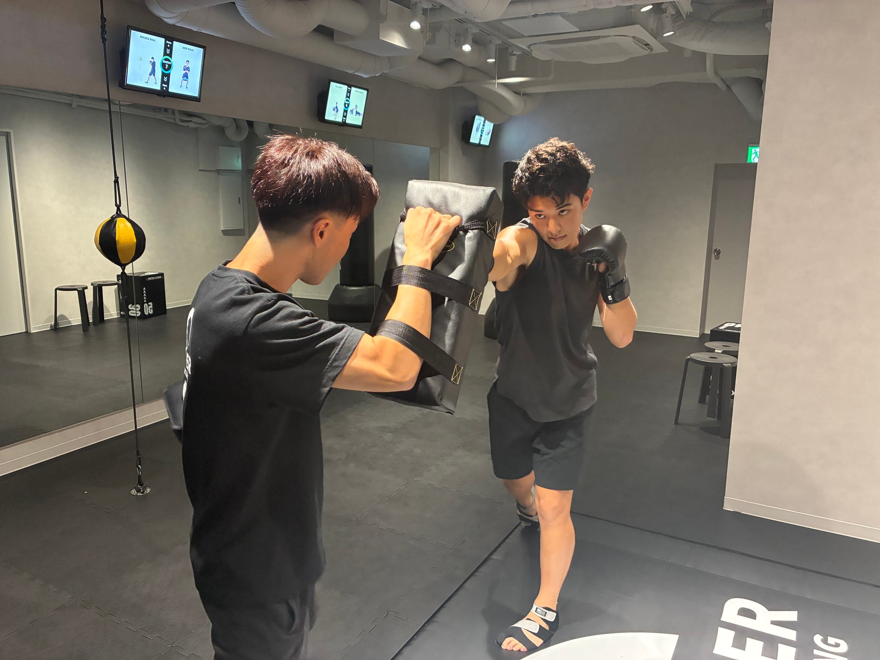 パンチやキックをインストラクターの指示に合わせて繰り出す1対1のトレーニング。腕・脚・体幹を同時に使う全身運動のため、短時間でも高いカロリー消費と脂肪燃焼効果が期待できます。特に腹部や下半身の引き締めに効果的で、継続することで筋力・持久力の向上にもつながります。また、パンチを打ち込む瞬間に集中力が増し、トレーニングに夢中になれる没入感が生まれます。終了後には、心身がすっきりと軽くなるような達成感を味わえるのも大きな魅力です。