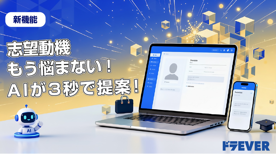 株式会社ドラEVER(本社:東京都港区 代表:岡野照彦)は、履歴書作成で悩む求職者向けにAI自動生成機能を会員限定サービスとして提供開始。最大5つの候補から選ぶだけで応募準備が完了します。