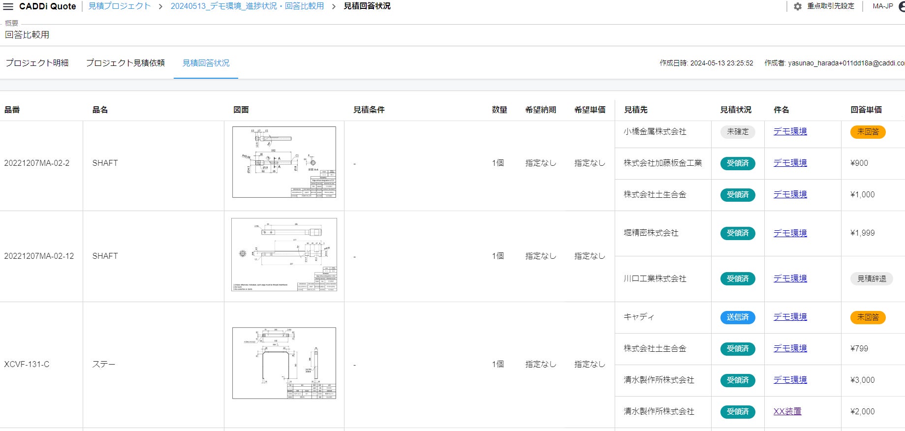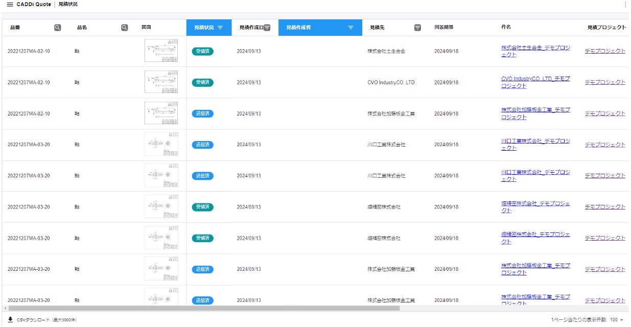 CADDi Quote上でやり取りされたデータは全て自動で蓄積され、ダウンロード可能