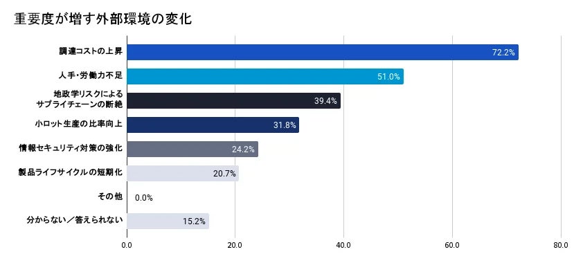 ※参考:【キャディ 製造業の調達実態調査】製造業で今後重要度が増すリスク、「調達コストの上昇」(72.2%)が「人手不足」(51.0%)を抑え1位 https://prtimes.jp/main/html/rd/p/000000116.000039886.html
