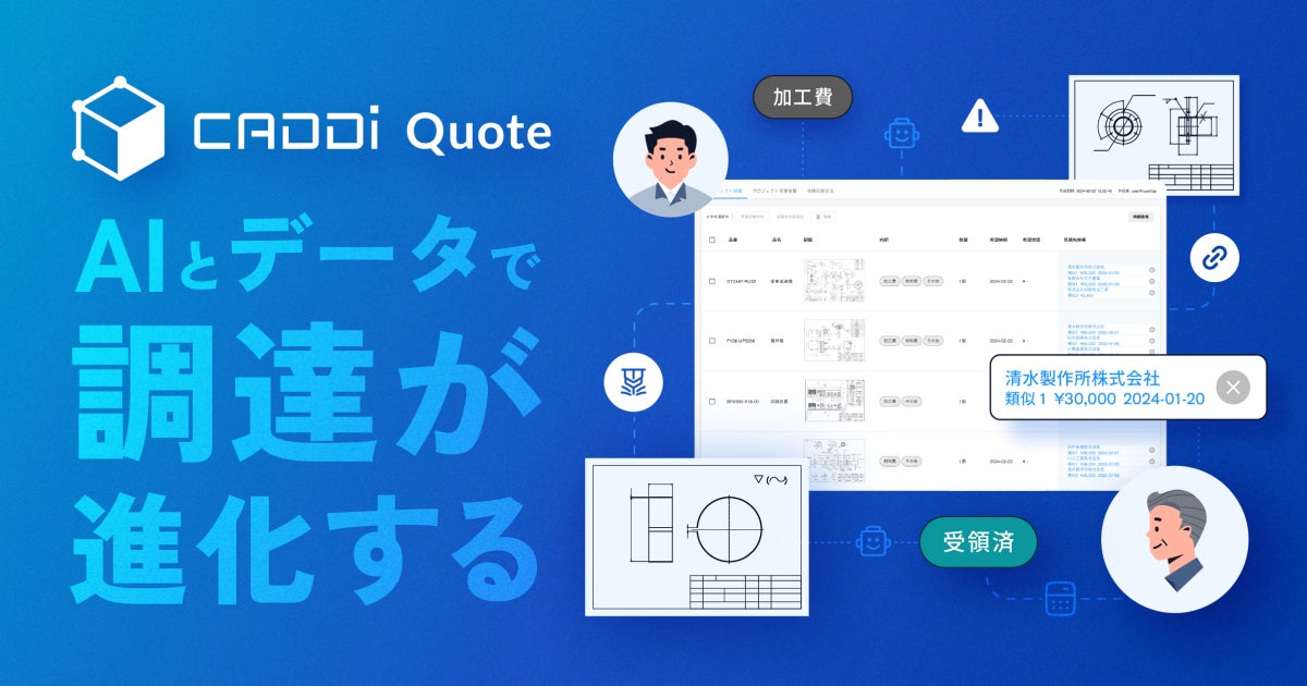 製造業のデジタル変革に挑むキャディ株式会社(本社:東京都台東区、代表取締役:加藤 勇志郎、以下キャディ)は、製造業AIデータプラットフォームの新アプリケーションである、AI見積クラウド CADDi Quote(キャディ クオート)を2024年9月17日より正式に提供開始しましたことお知らせいたします。